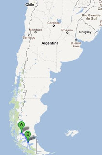 為了去百內國家公園 所以必須先從Santiago坐飛機到B點(PUNTA ARENAS)